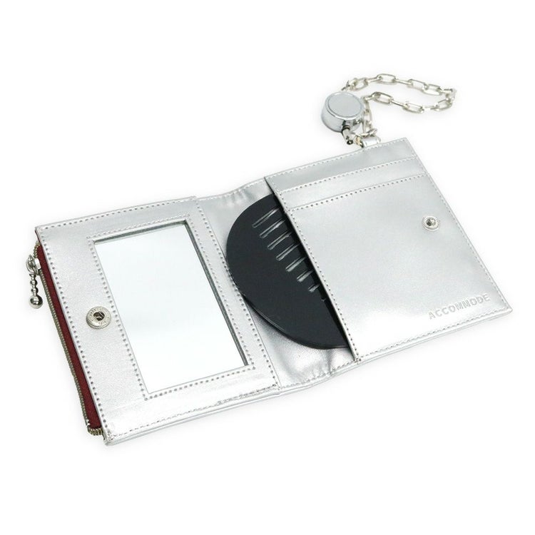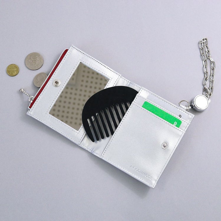 本体内側にはミラーとコーム付きで、どこでもサッと身だしなみチェックができる優れもの。