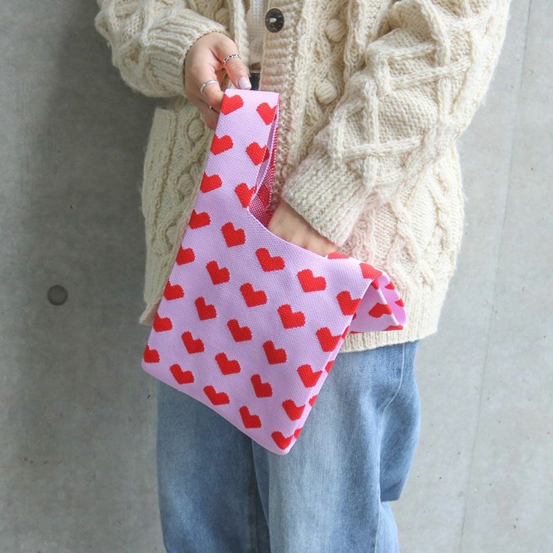シンプルなコーデに映える、ハート柄がとってもキュートなバッグ。
