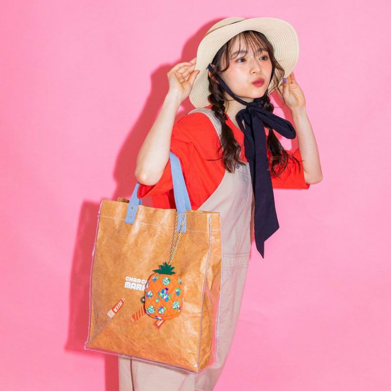 タイベックとクリア生地をかさねた、透け感と遊び心のあるクラフトトートバッグ。