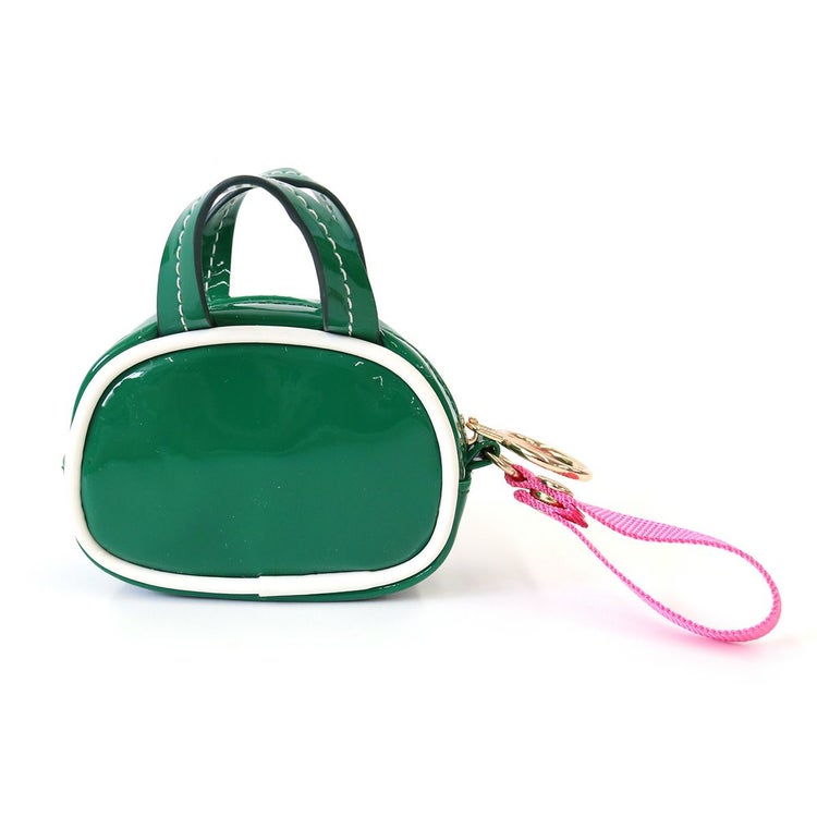 エナメルバッグをそのまま小さくしたような楽しいデザイン。