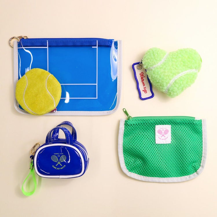 3つの異なるサイズのポーチで、テニスを表現したアコモデらしいポップで楽しいアイテム。