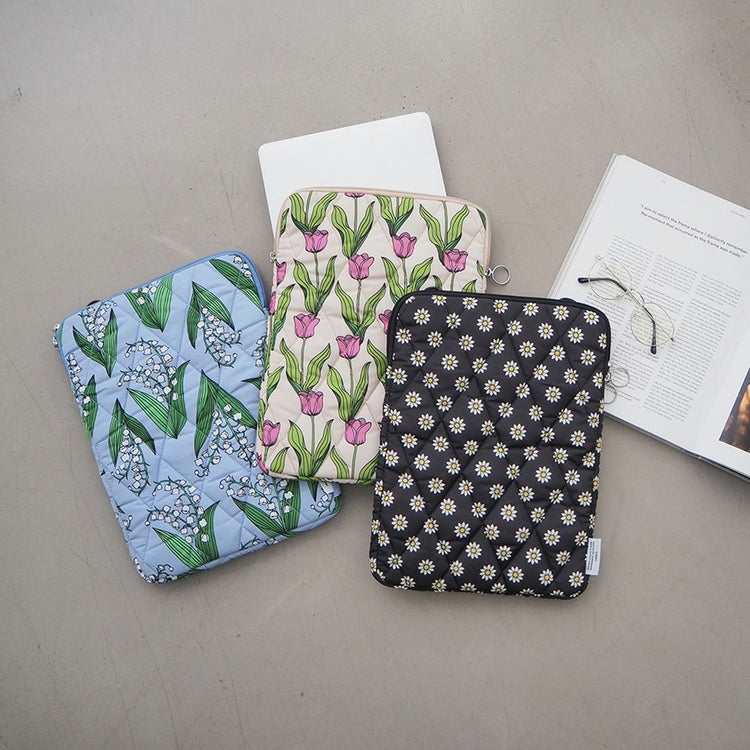 13インチのノート型PCを収納できる、大胆なテキスタイル柄のPCケース。