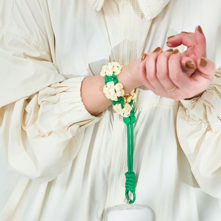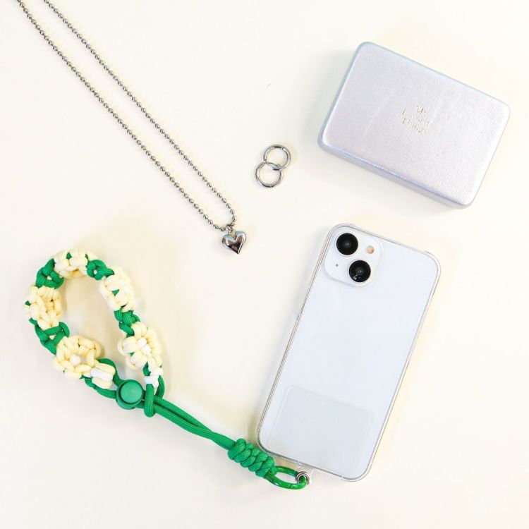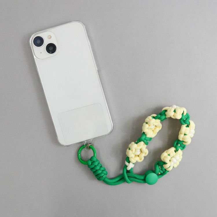 お花をモチーフにマクラメ編みされたストラップ