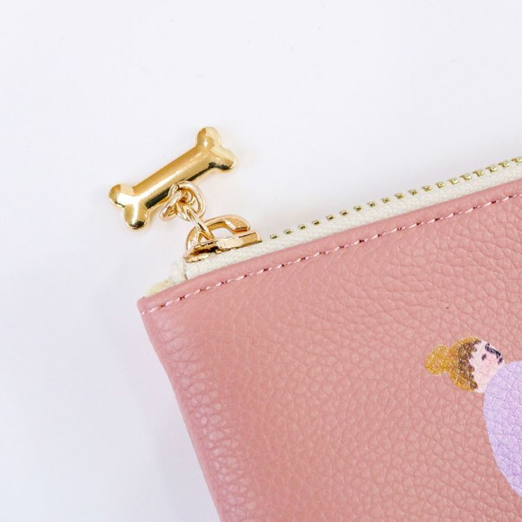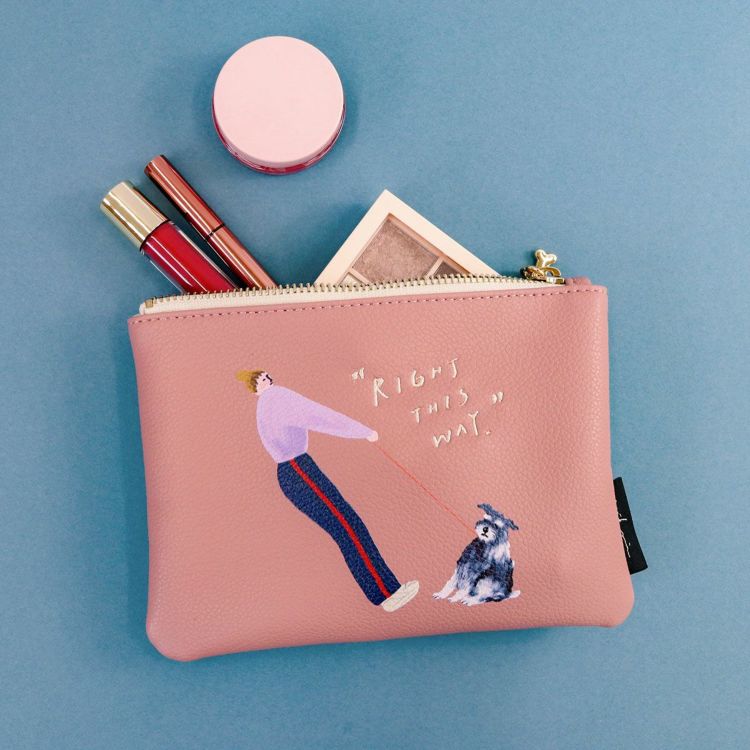 シボ感のある合皮に、プリントと刺繍で表現したシンプルながらもインパクトのあるポーチ。