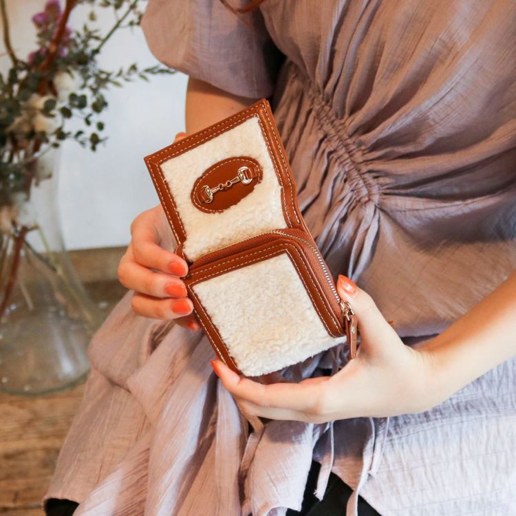 秋冬らしいボアとビット金具がポイントのミニウォレット
